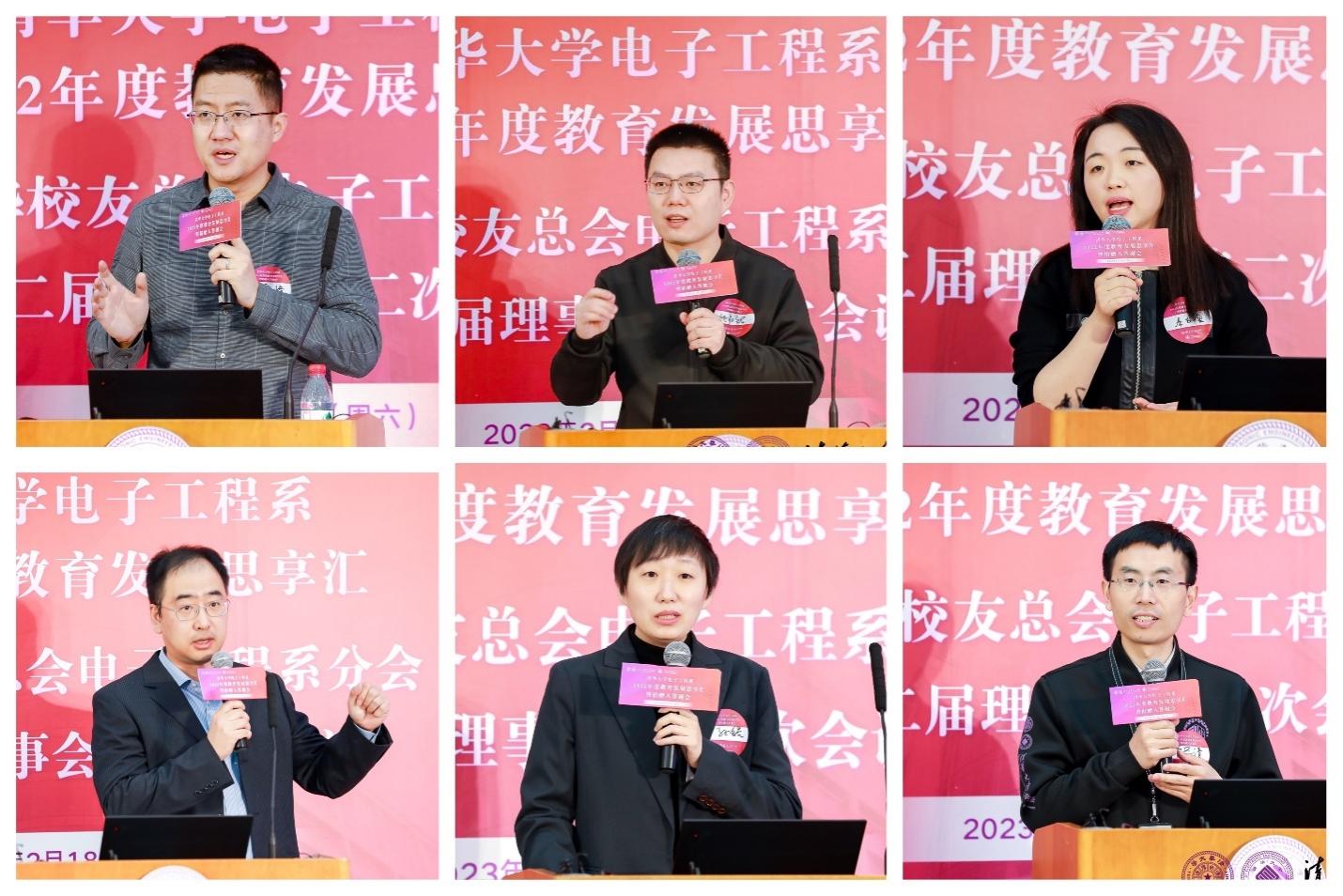 在电子信息前沿技术思享汇环节,电子系青年教师代季峰、姚权铭、秦志金、霍力、孙皓、李学清分别作了不同领域前沿技术分享。现场观众进行了热烈讨论。