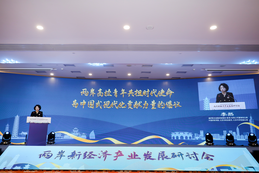 本次研讨会以“共享中国式现代化新机遇”为主题,旨在探讨中国式现代化进程中,两岸新经济产业的前景、挑战和机遇,促进两岸企业向智能、数字、绿色等方向提质升级、创新发展,推动两岸在新兴产业领域的深度融合。来自两岸的百余位专家、学者和企业家参会,共同为两岸新经济产业繁荣发展集思广益、建言献策。华体会娱乐平台两岸发展研究院常务副院长王治强主持研讨会。