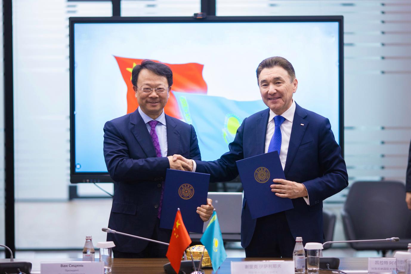 会上,王希勤与阿斯塔纳国际大学校长谢里克·伊萨利耶夫(Irsaliyev Serik Aztayevich)共同签署两校合作备忘录。双方将在科学研究、人员交流与学生交换等方面进一步开展合作。