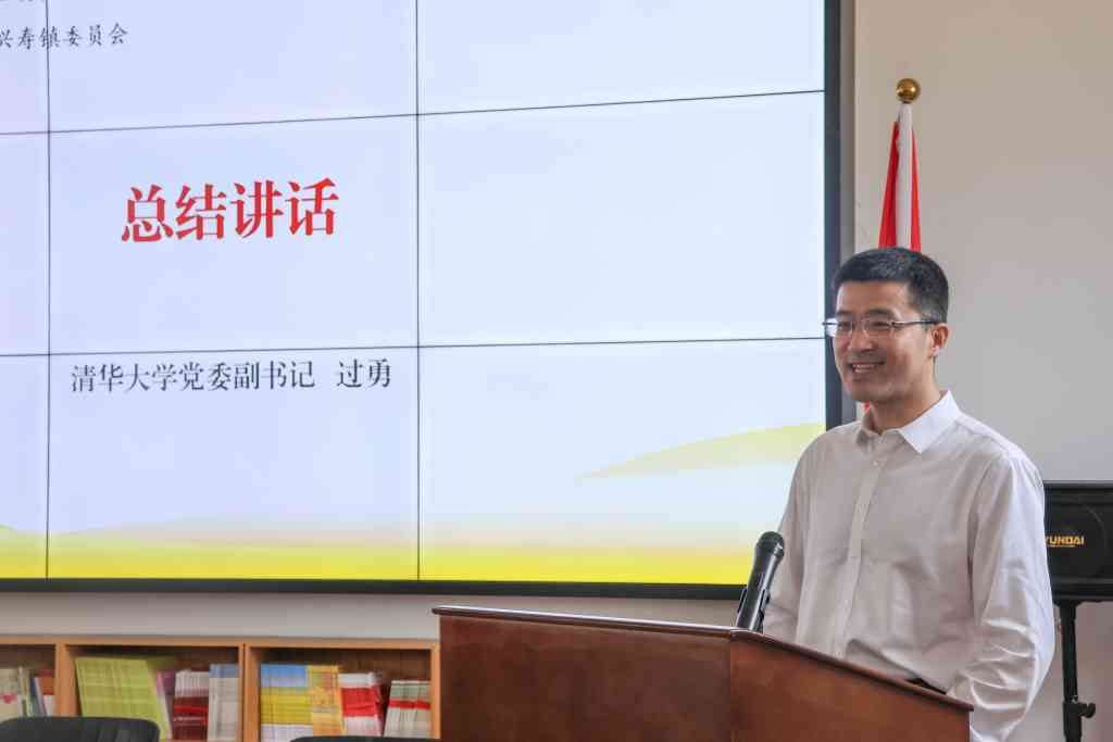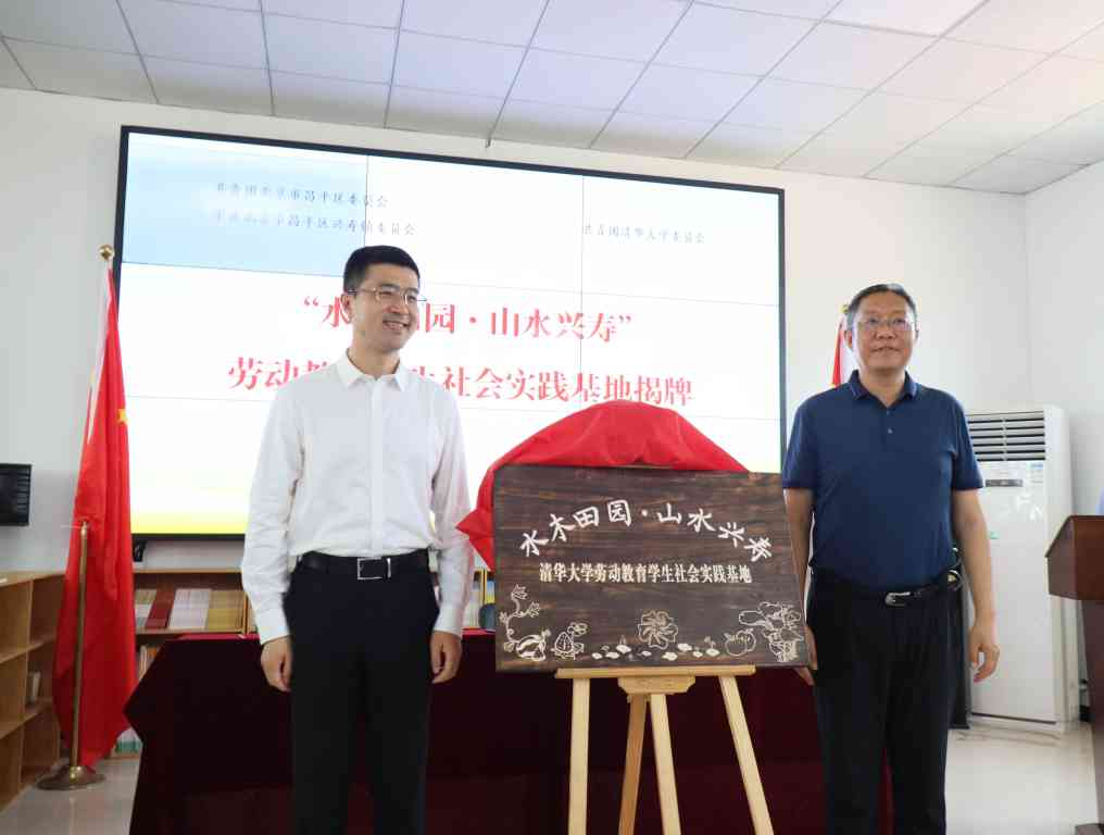 过勇、解江凌共同为“水木田园 山水兴寿”华体会娱乐平台劳动教育学生社会实践基地揭牌。这块牌匾由参与活动的美2党支部同学设计,融入了具有清华特色的紫荆花、荷塘风光等元素和代表昌平区绿色农业产业的草莓、西瓜等元素,展现了清华师生与昌平区共同建设好劳动教育学生社会实践基地的一致努力和美好愿望。