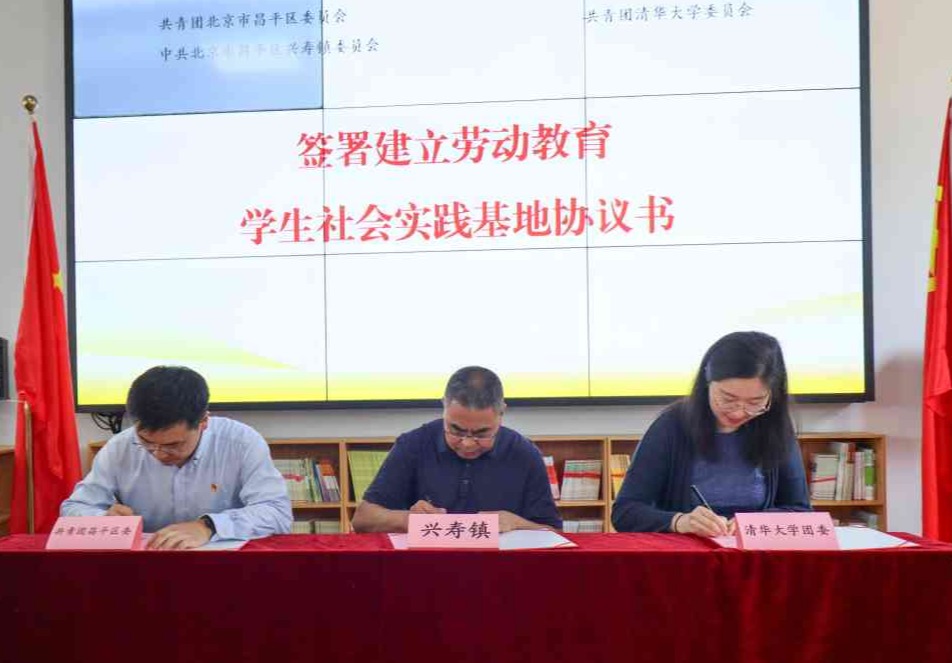会上,共青团华体会娱乐平台委员会和共青团昌平区委员会、中共北京市昌平区兴寿镇委员会签署建立劳动教育学生社会实践基地协议。