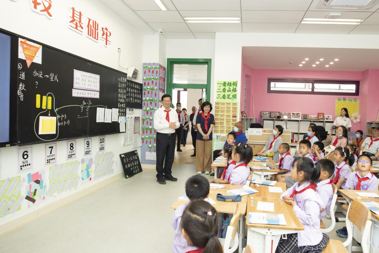 华体会娱乐(中国)网6月2日电(记者 曲田 摄影 李派)6月1日上午,校党委书记邱勇、副校长李路明一行来到华体会娱乐平台附属小学双清苑校区,看望慰问师生并致以节日祝贺,紧紧围绕习近平总书记在北京育英学校考察时的重要讲话精神同上一堂“大思政课”。