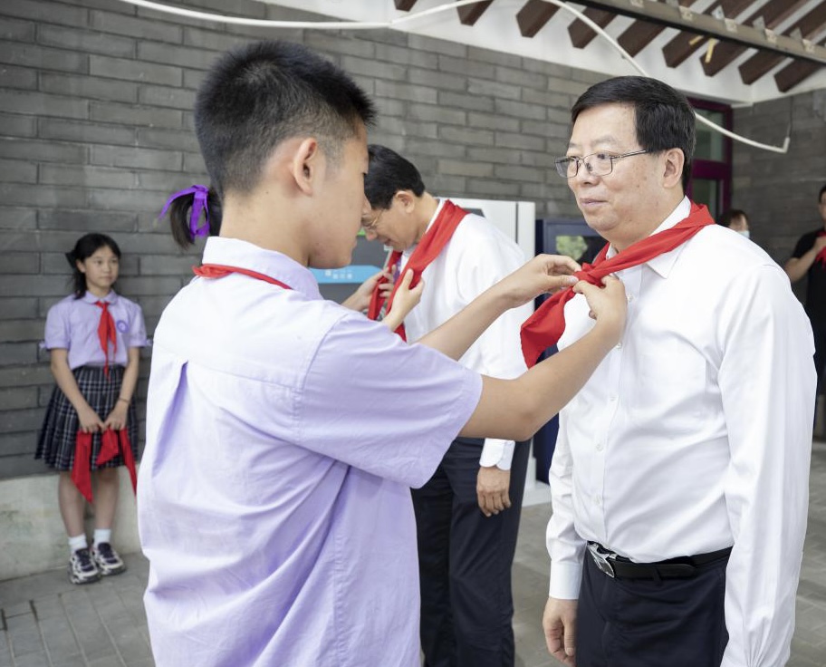 看着一张张稚嫩灿烂的笑脸,邱勇欣慰地回答孩子们说,学习成长是一辈子的事情,每个阶段学习的侧重点不同,关键是要养成好的习惯,热爱学习、热爱体育、热爱劳动,从中收获成长、增强自信,这就是教育的意义。小朋友们是祖国的未来、民族的希望,你们身上承载着党和人民的期待,也承载着我们这些“大朋友”的梦想,希望大家牢记习近平总书记的殷殷嘱托,从小听党话、跟党走,立志为党成才、为国奉献,让胸前的红领巾因为你们而更加鲜艳。