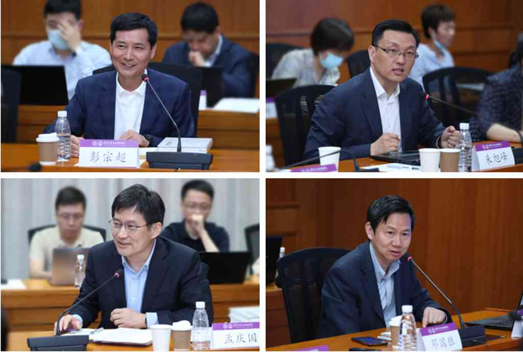彭宗超、朱旭峰、孟庆国发言,邓国胜主持座谈会(从左至右,从上至下)