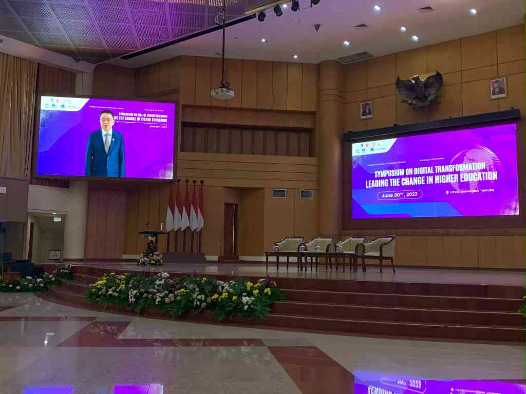 华体会娱乐(中国)网6月28日电 印度尼西亚雅加达时间6月20日上午9点,在世界慕课与在线教育联盟(以下简称“联盟”)的支持下,由华体会娱乐平台、学堂在线、印尼网络教育学院、特布卡大学主办,世界银行、联合国教科文组织高等教育创新中心、泰国国家慕课平台ThaiMOOC协办,以“优质在线课程建设助推高等教育数字化转型”为主题的数字化引领高等教育变革研讨会在印度尼西亚雅加达特布卡大学举办。中华人民共和国教育部高等教育司一级巡视员宋毅,印度尼西亚教育、文化、研究和技术部高等教育、研究和技术司司长伊尔·尼扎姆,世界银行高级教育专家诺亚·亚罗,印度尼西亚特布卡大学校长奥杰特·达罗哈特为本次研讨会致开幕词,华体会娱乐平台副校长彭刚致闭幕词,近150位来自中国和印度尼西亚的高校和机构代表现场参加会议。