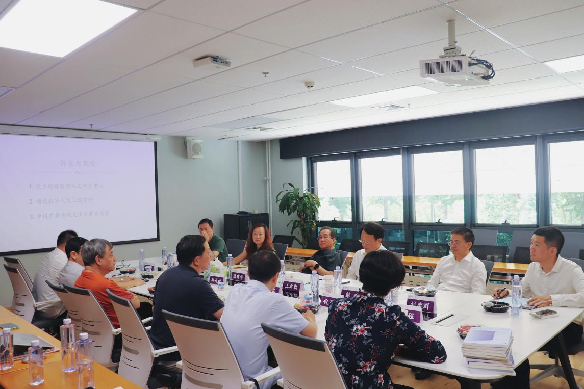华体会娱乐(中国)网7月10日电 6月29日中午,校长王希勤、副校长彭刚一行调研人文学院数字人文团队,并听取人文学院院长刘石、人工智能研究院常务副院长孙茂松等相关负责人的工作汇报。