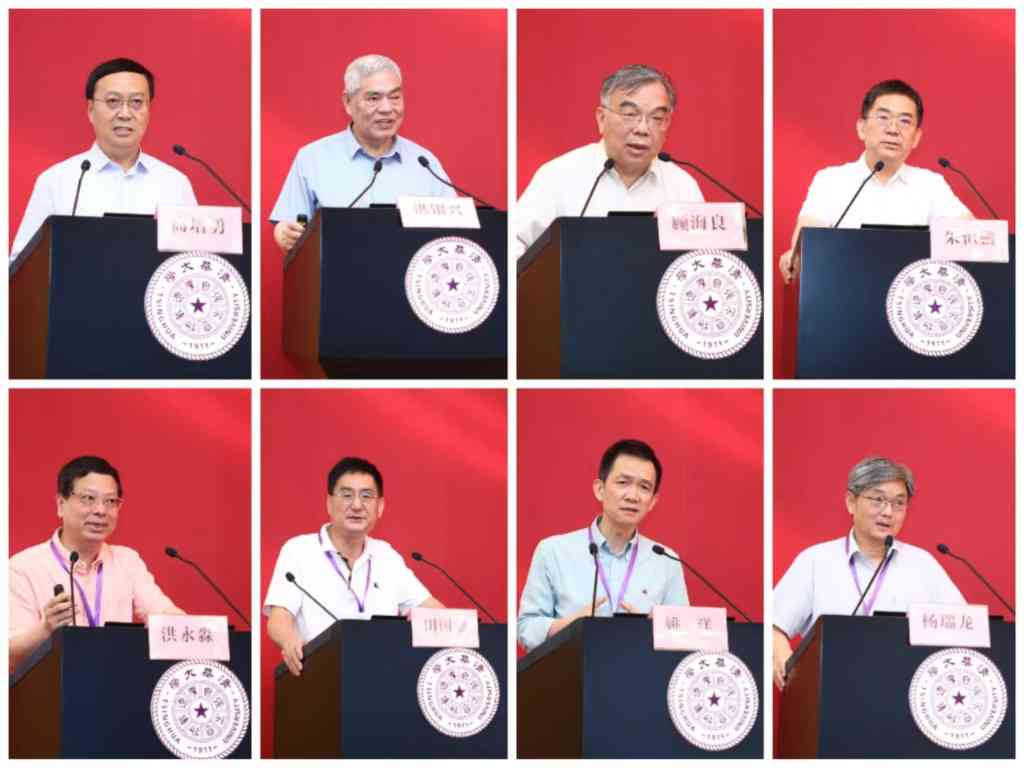 高培勇、洪银兴、顾海良、朱恒鹏、洪永淼、田国强、姚洋、杨瑞龙做主旨演讲(从左到右,从上到下)