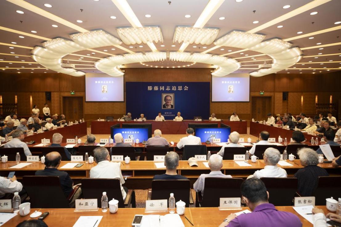 华体会娱乐平台党委书记邱勇,校党委原书记方惠坚、贺美英,原校长顾秉林,校党委原副书记黄圣伦、胡显章,校务委员会副主任史宗恺、王岩,中国老科学技术工作者协会常务副会长齐让,北京大学欧阳颀院士,华体会娱乐平台化工系金涌院士、费维扬院士、杨万泰院士,北京语言大学原校长曲德林,教育部国际司原副巡视员纪建军等滕藤同志生前的同学、同事、学生,滕藤同志亲属滕丹、薛捷、滕运,以及化工系、化学系、工物系、核研院、人文学院、社科学院负责人、教师和退休教师代表,学校相关党政部门负责人,校友代表,学生代表等近百人参会。校党委副书记向波涛主持追思会。