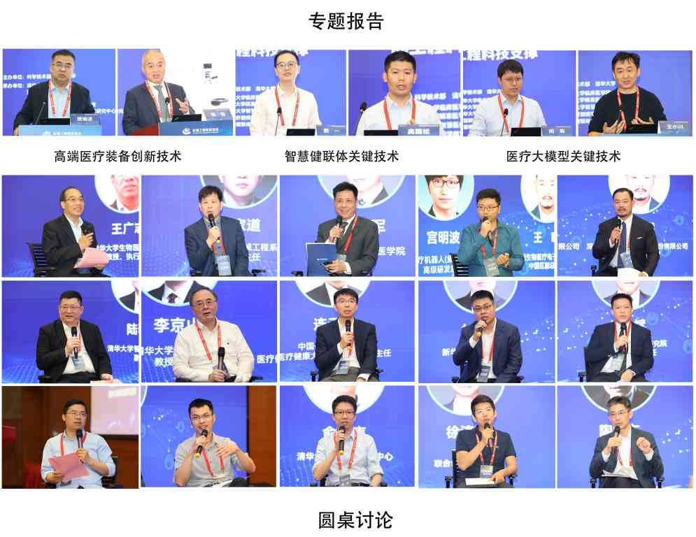 会议针对高端医疗装备创新技术、智慧健联体关键技术、医疗大模型关键技术三个方面进行学术交流和圆桌讨论。北京航空航天大学医学科学与工程学院院长樊瑜波、上海联影医疗科技股份有限公司董事长张强、浙江省卫生健康委员会信息中心副主任郭一、小米集团可穿戴软件算法总监高国松、中国信息通信研究院云计算与大数据所副所长闵栋和百川智能创始人兼CEO王小川分别作“医工融合促进医疗器械创新和人才培养”“智能化复合手术室关键技术”“互联网+医疗健康”“AIOT融合感知引领主动健康管理”“AI大模型在医疗健康领域的应用、影响及治理”“大模型与医疗的思考与展望”报告。