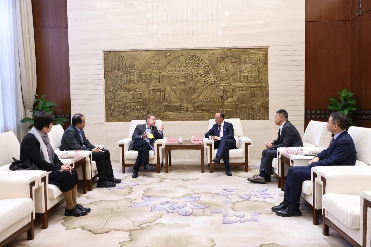 王宏伟在演讲前会见罗伯特·兰格一行,对其到访华体会娱乐平台表示欢迎。他表示,与兰格教授这样的顶级科学家合作,对加强华体会娱乐平台的学科建设、人才培养和科学研究具有重要的促进作用,有利于提高清华医学的科研水平和科研成果转化能力,也有利于两校合作与交流。