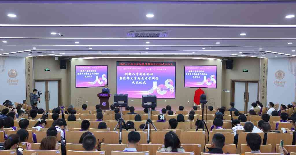 中国科协青少年科技中心主任辛兵,沈洁,海淀区科协党组书记、常务副主席陈鹏,方妍,清华附中党委书记曹海翔共同为清华附中科学技术协会揭牌。
