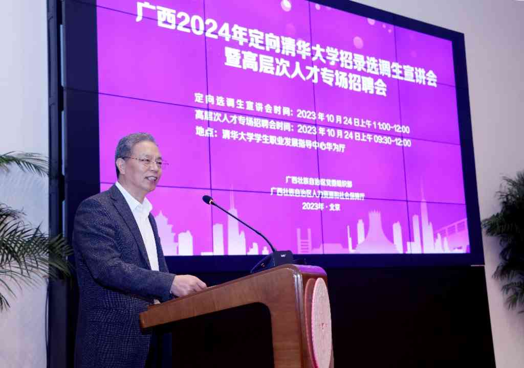 王维平在主题宣介中表示,党的二十大期间,习近平总书记在参加广西代表团讨论时,对广西寄予“在推动边疆民族地区高质量发展上展现更大作为”的厚望。当前,广西全区上下牢记习近平总书记嘱托,正紧紧围绕“五个更大”重要要求,奋力开创新时代壮美广西建设新局面,对人才的需求格外迫切。他表示,广西是个好地方,好在发展前景可期,好在干事舞台广阔,好在开放活力十足,好在包容、团结、和谐,好在秀美、宜居、康寿。清华有一批优秀校友扎根和建设广西,在重要岗位上发光发热,得到了组织和群众的认可。真诚欢迎清华毕业生到广西建功立业、放飞梦想,将青春之花绽放在祖国最需要的地方。