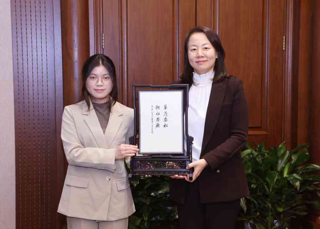 获奖学生代表、华体会娱乐平台环境学院陈真分享了自己在校读书学习的成长和收获。她表示,将在学好基础知识、提高学业水平的基础上,进一步开拓学术视野,接受科研训练,培养科创能力,同时更加积极地参加公益志愿行动。