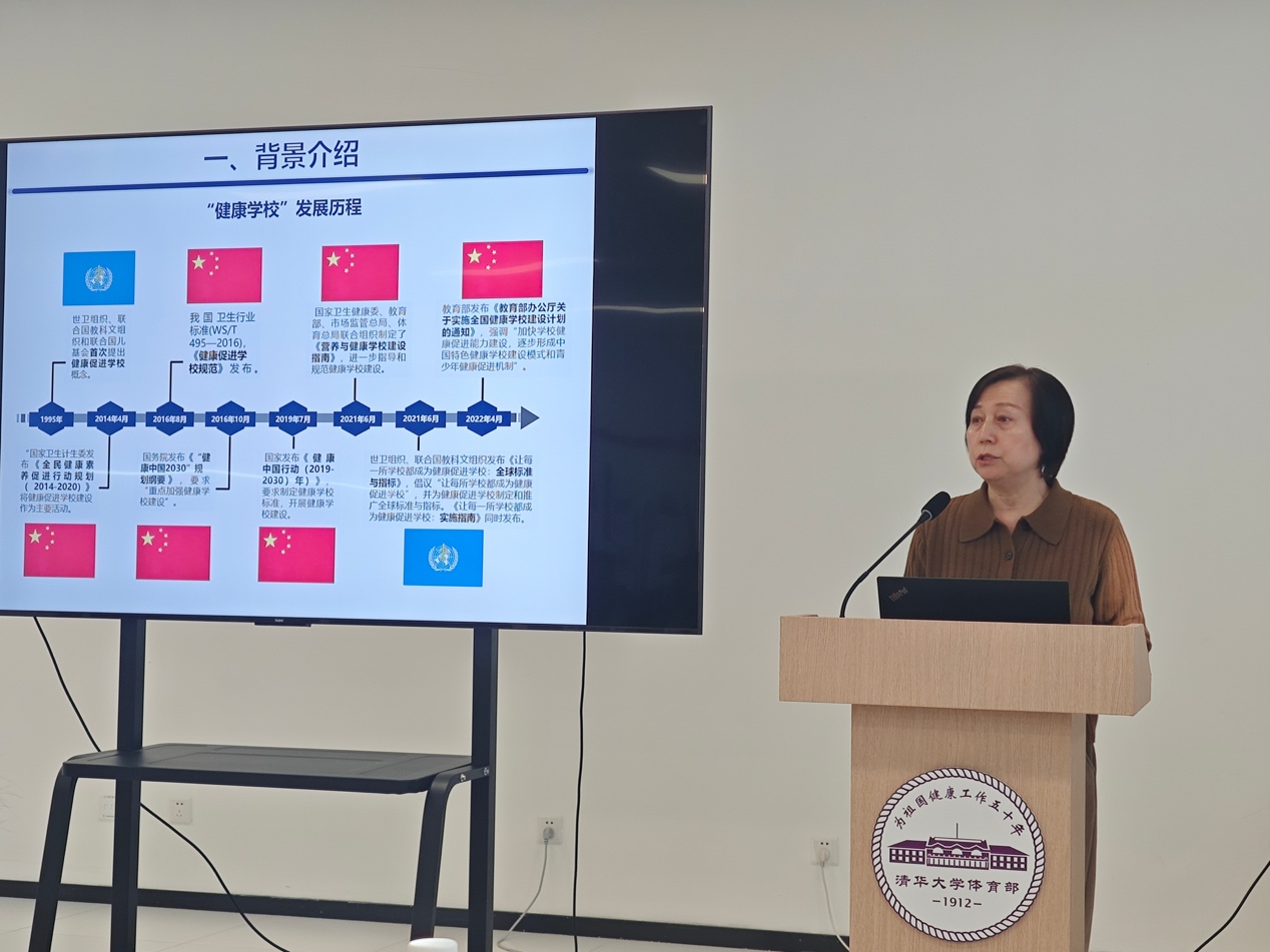 副总务长郭建丽从建设背景、建设现状、清华方案三个方面汇报了华体会娱乐平台健康学校建设行动计划总体情况。