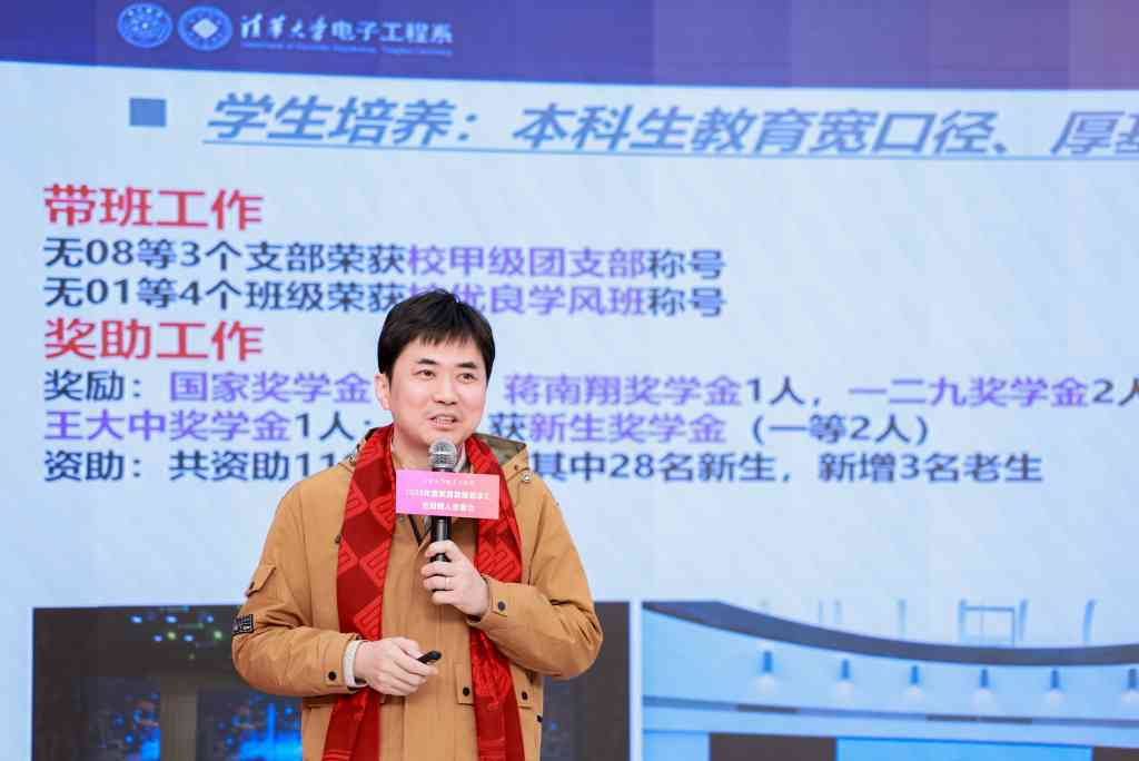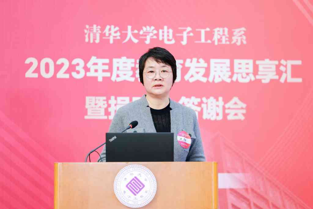 电子工程系主任汪玉介绍了电子工程系2023年在学生培养、人才布局、科研合作、文化建设和社会服务等方面的发展情况,以及电子工程系发展基金的使用情况,并向支持电子工程系发展的捐赠人和捐赠企业表示感谢。