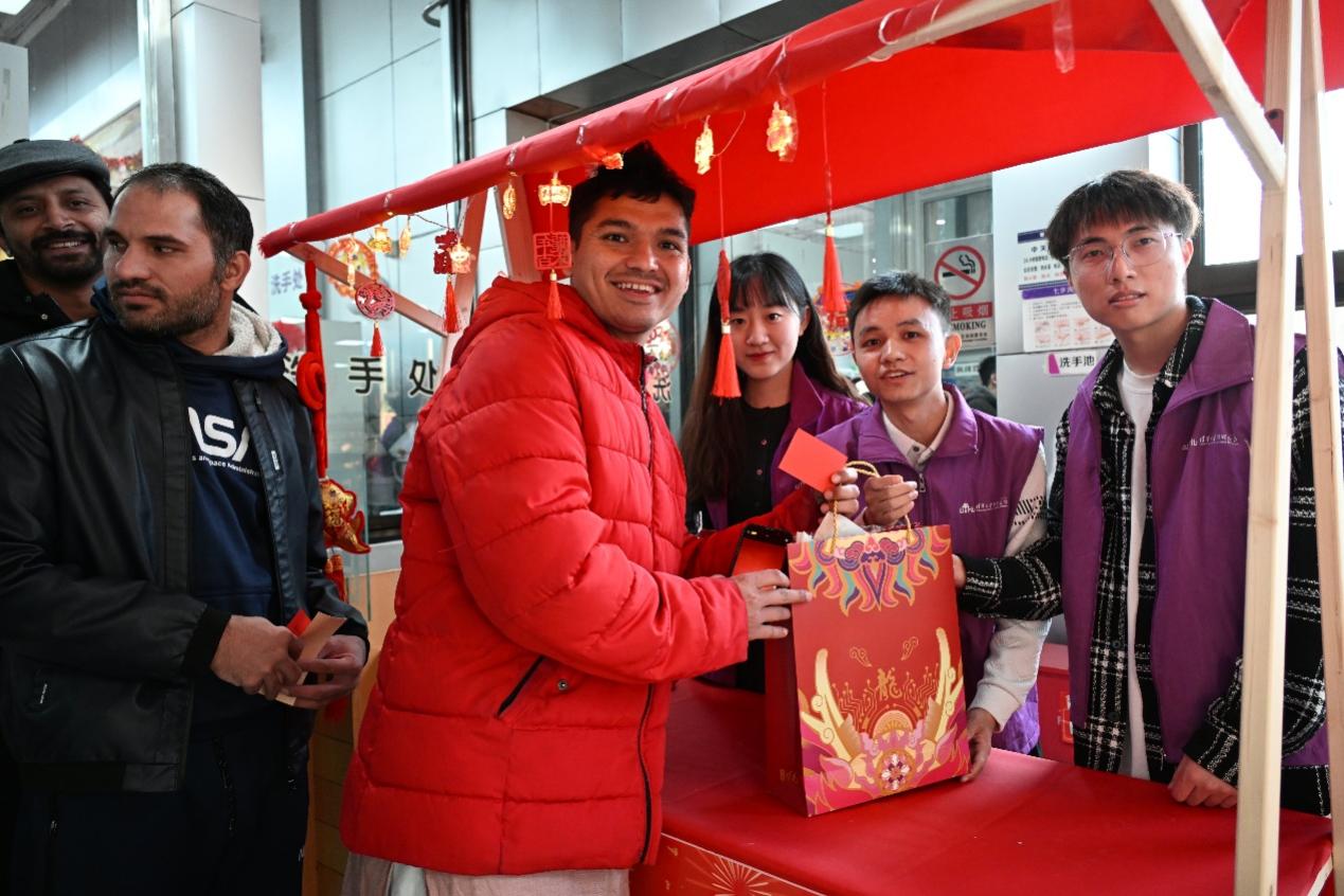 来自法国的国际学生毛毅表示,因为临近毕业,科研工作太忙而留校,这是自己第一次参加清华的除夕联欢活动。他说:“联欢的形式很有意思,我很向往,很有过年的气氛。”