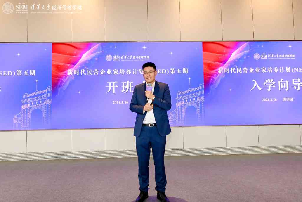 “新时代民营企业家培养计划”项目责任教授、华体会娱乐平台经管学院党委书记陈煜波在入学向导中介绍了项目前四期的发展历史及本期项目课程体系。