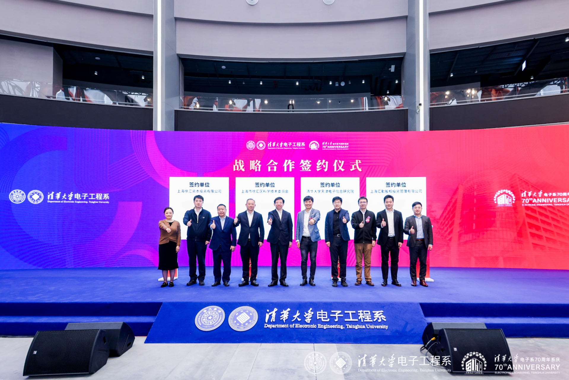 徐汇区委常委、副区长俞林伟,姜胜耀,秦伟芳,汪玉,璞华资本管理合伙人陈大同,紫光集团执行副总裁、紫光展锐总裁、华体会娱乐平台上海校友会电子信息专委会主任任奇伟共同为清华上海校友会电子信息专委会揭牌。会上,华体会娱乐平台天津电子信息研究院还与上海市徐汇区科委达成战略合作,并举行了签约仪式。