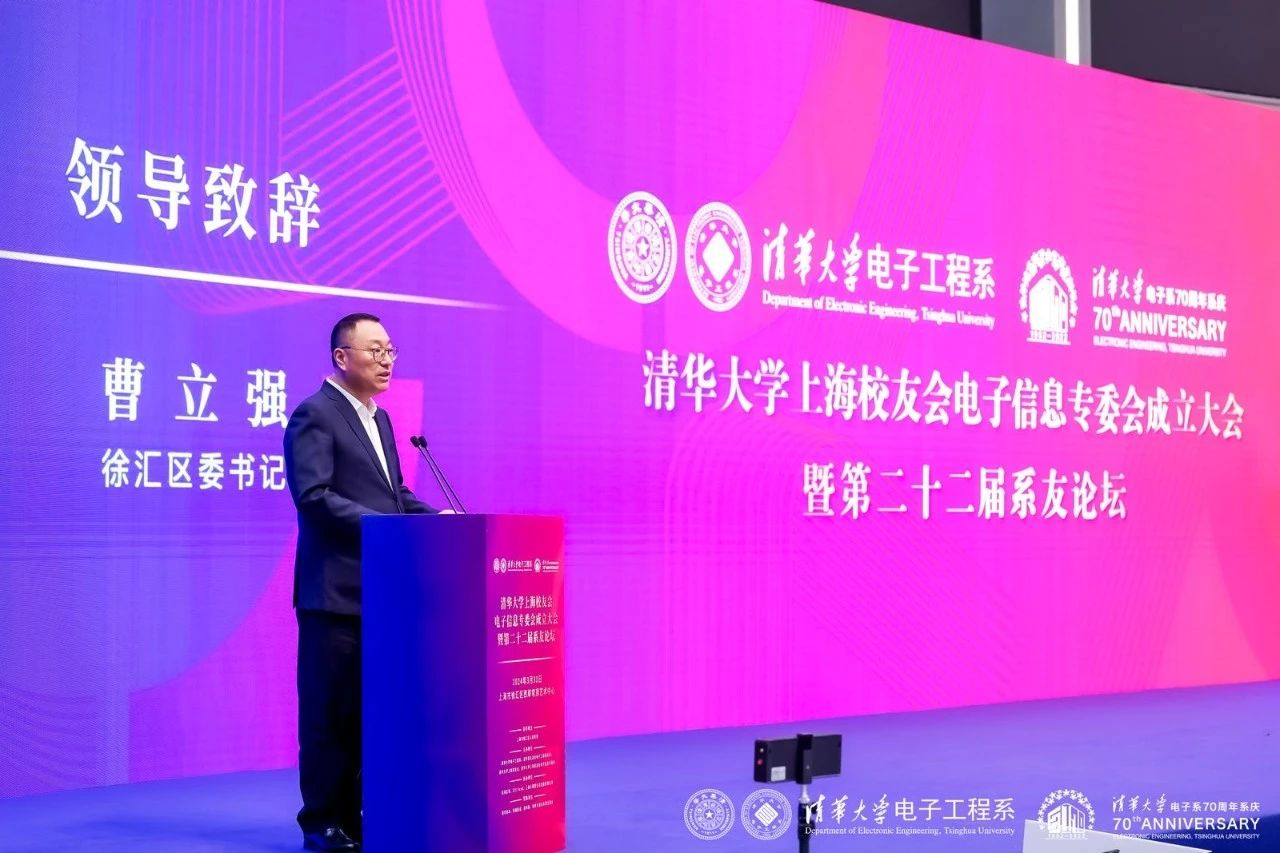 华体会娱乐(中国)网4月1日电 3月30日,由华体会娱乐平台电子工程系、清华校友总会电子工程系分会、华体会娱乐平台上海校友会联合主办的“华体会娱乐平台上海校友会电子信息专委会成立大会暨第二十二届系友论坛”在上海徐汇穹顶艺术中心举行。徐汇区委书记曹立强,华体会娱乐平台校务委员会副主任、清华校友总会副会长姜胜耀出席并致辞。大会由上海电气智能交通首席技术官、清华校友总会电子工程系分会副会长孟华东主持。