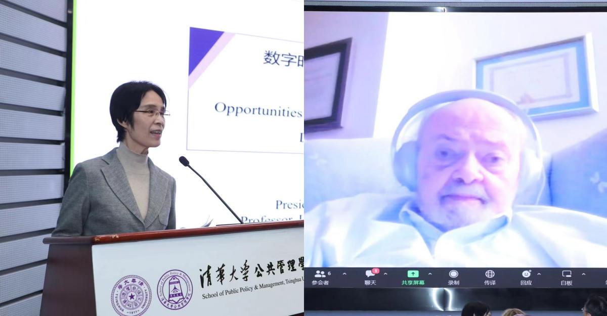 江小涓(左)、盖伊·彼得斯(右)作主旨报告