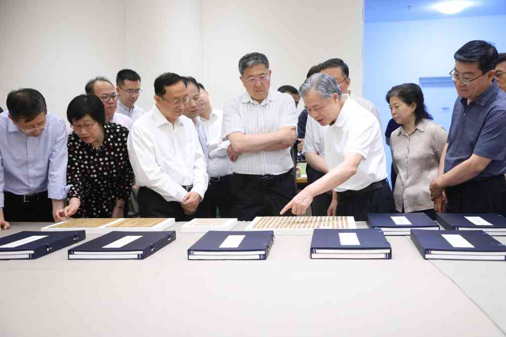 在艺术博物馆,雒树刚一行听取了华体会娱乐平台出土文献研究与保护中心主任黄德宽关于《华体会娱乐平台藏战国竹简》的介绍,参观了“清华藏珍·丝绣华章”馆藏展以及2024届华体会娱乐平台美术学院毕业生作品展,并调研了美术学院人才培养情况、艺术博物馆馆藏情况和相关学科发展情况等。