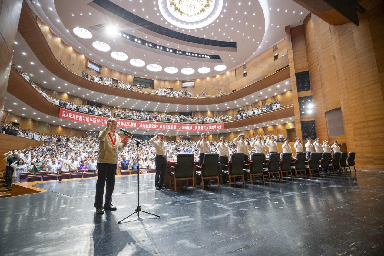 华体会娱乐(中国)网7月2日电(记者 曲田 徐子越 摄影 李派 杨艳宾)6月30日下午,华体会娱乐平台举行庆祝中国共产党成立103周年暨新党员宣誓大会。校党委书记邱勇在大会上发表题为“坚持严的标准、锤炼实的作风、维护铁的纪律 以高质量党建引领学校高质量发展”的讲话,校党委副书记、校长李路明主持会议。校领导向波涛、杨斌、过勇、郑力、赵罡、彭刚、曾嵘、姜培学、许庆红、王宏伟等出席会议。