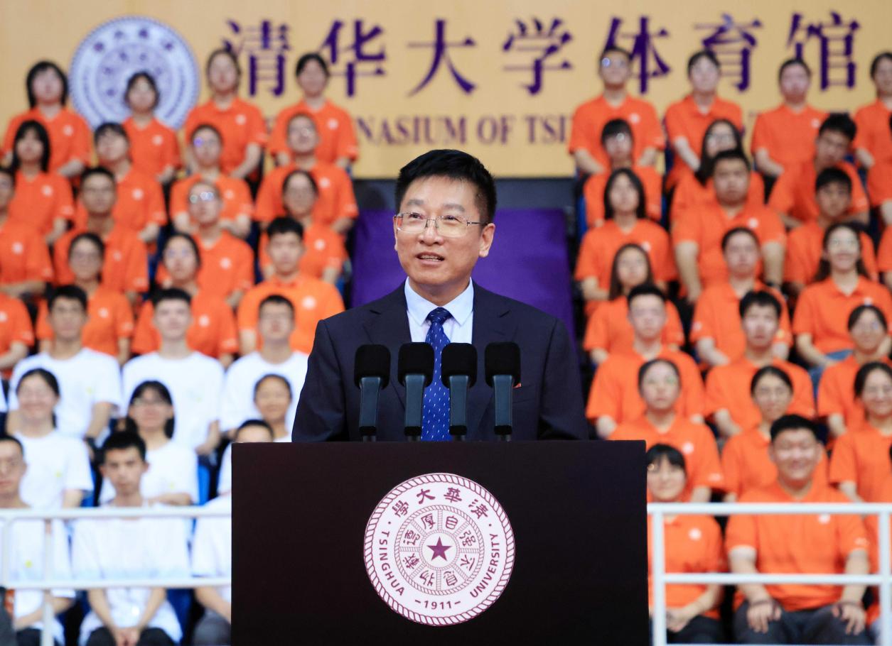 校长李路明发表了题为“涵养厚德品格 担当时代重任”的讲话。他代表全校师生员工向新生表示欢迎,并向同学们介绍了110年前梁启超先生在清华园演讲时以《周易》中“天行健,君子以自强不息”“地势坤,君子以厚德载物”勉励清华学子、后来清华以“自强不息、厚德载物”作为校训的故事。李路明说,作为新时代的清华人,同学们身处于中华民族伟大复兴的关键时期,更要以厚德立身,开阔胸襟气度,拓展人生格局,才能成就自己、成就他人,不负韶华、不负时代。厚德就是要器量宽宏,“责己甚厚,责人甚轻”。希望大家严于律己、宽以待人,乐于学习他人的长处,善于改正自身的过失,共同为构建和谐包容、向上向善的社会贡献力量。厚德就是要胸怀博大,“处世接物坦焉无所芥蒂”。希望大家襟怀坦荡、言行一致、无私无畏,养成纯粹清澈的优秀品质,永葆为国为民的赤子之心。厚德为先、才华为重,德才兼优方能“出膺大任”。希望大家砥砺品德、增长才干,做到又红又专、全面发展,努力成为有理想、有本领、有担当的社会主义建设者和接班人。