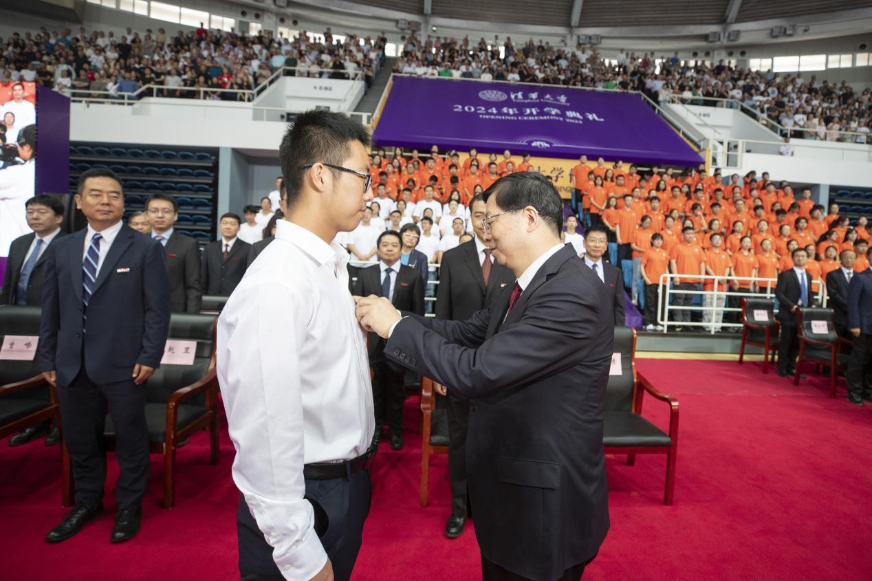 邱勇为新生代表佩戴华体会娱乐平台徽章
