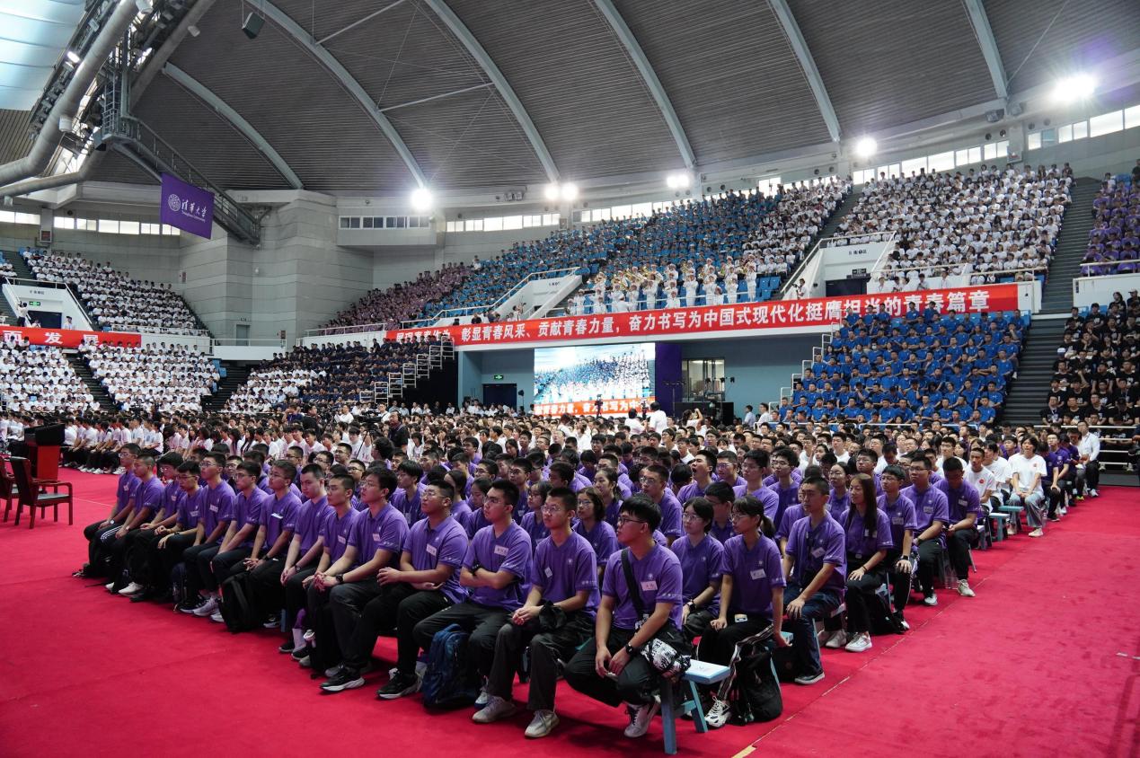 3000余名新生在综合体育馆主会场参加典礼并聆听开学第一课。他们满怀青春热忱,从这里踏上在清华追逐梦想、拥抱成长的崭新旅程。