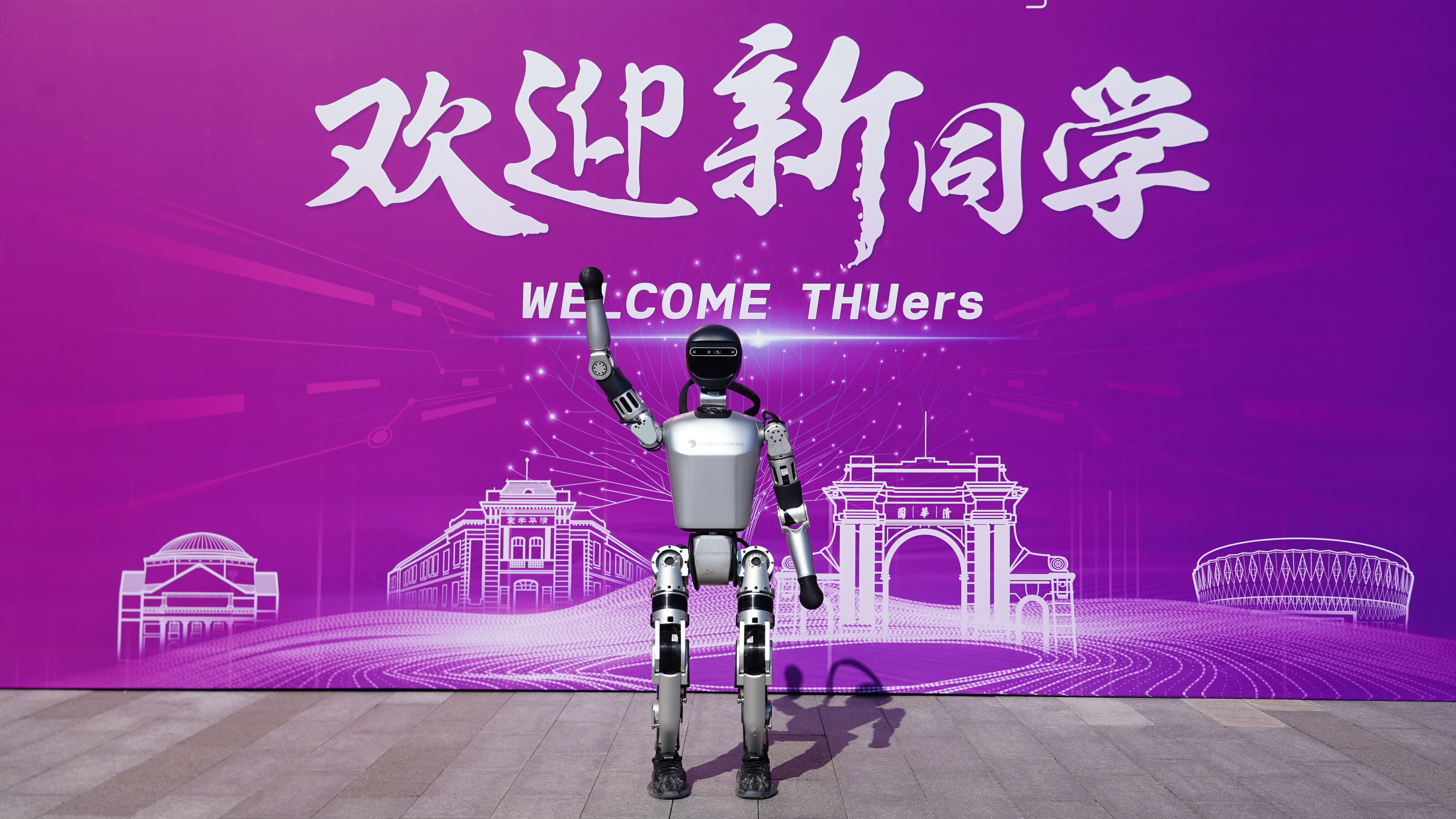 “你好!欢迎来到华体会娱乐平台新生报到现场!”今年迎新活动现场多了一位特别的“志愿者”——自动化系赵明国老师课题组研发的人形机器人,它走上前和新同学挥手、握手,欢迎前来报到的新生。