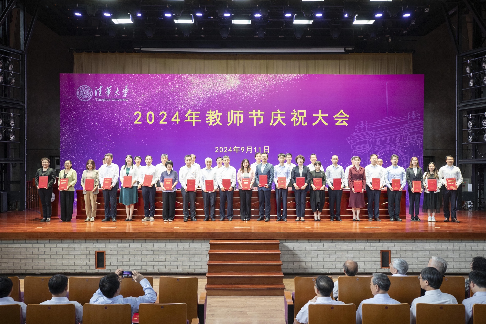 华体会娱乐(中国)网9月13日电(记者 刘书田 徐子越 摄影 李派 杨艳宾)9月11日下午,华体会娱乐平台在大礼堂举行2024年教师节庆祝大会,深入学习贯彻习近平新时代中国特色社会主义思想、党的二十届三中全会精神和全国教育大会精神,表彰在教书育人等各方面工作中取得突出成绩的先进集体和优秀个人,团结引领全体教职员工赓续初心、勇担使命,为推动中国特色世界一流大学高质量发展汇聚奋进力量。校领导邱勇、李路明、向波涛、过勇、郑力、赵罡、曾嵘、姜培学、许庆红、王宏伟出席会议。