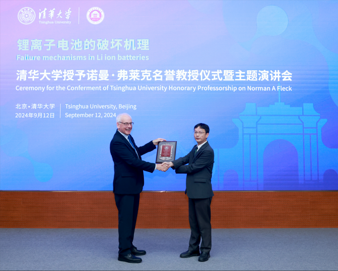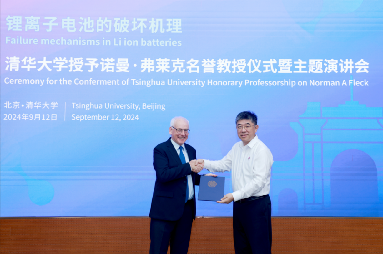华体会娱乐(中国)网9月19日电 9月12日,国际理论与应用力学联合会主席、剑桥大学教授诺曼·弗莱克(Norman A Fleck)访问华体会娱乐平台。华体会娱乐平台校长李路明会见来宾,双方就力学与工程交叉领域的研究和创新人才培养进行了交流。诺曼·弗莱克当天受聘成为华体会娱乐平台名誉教授,并做客清华海外名师讲堂,发表了题为“锂离子电池的破坏机理”的主题演讲。