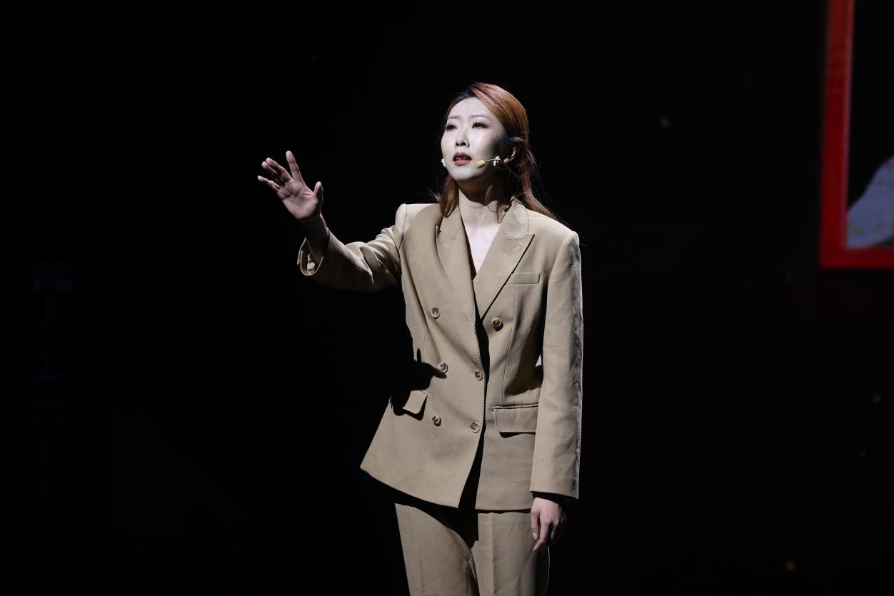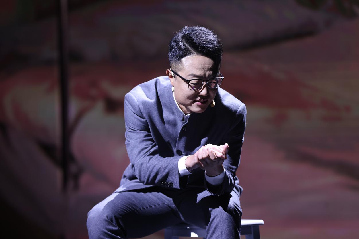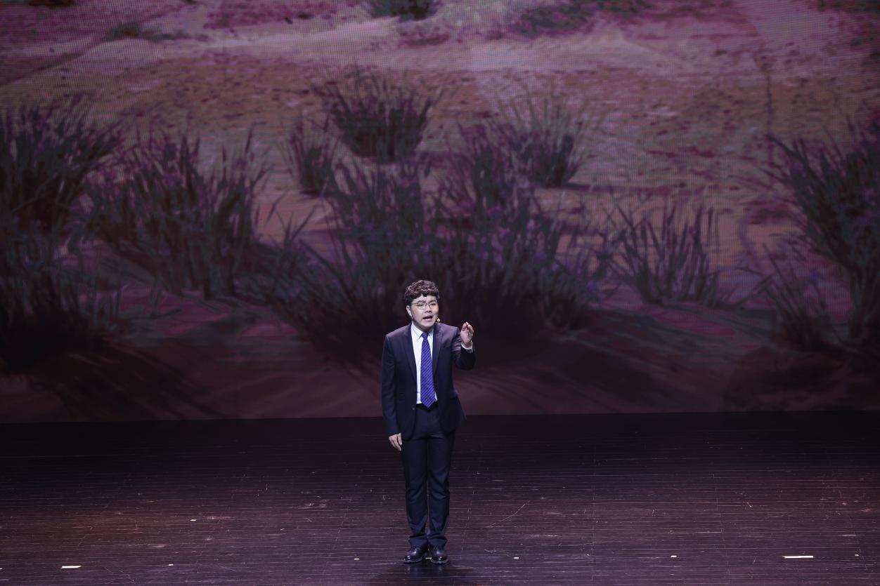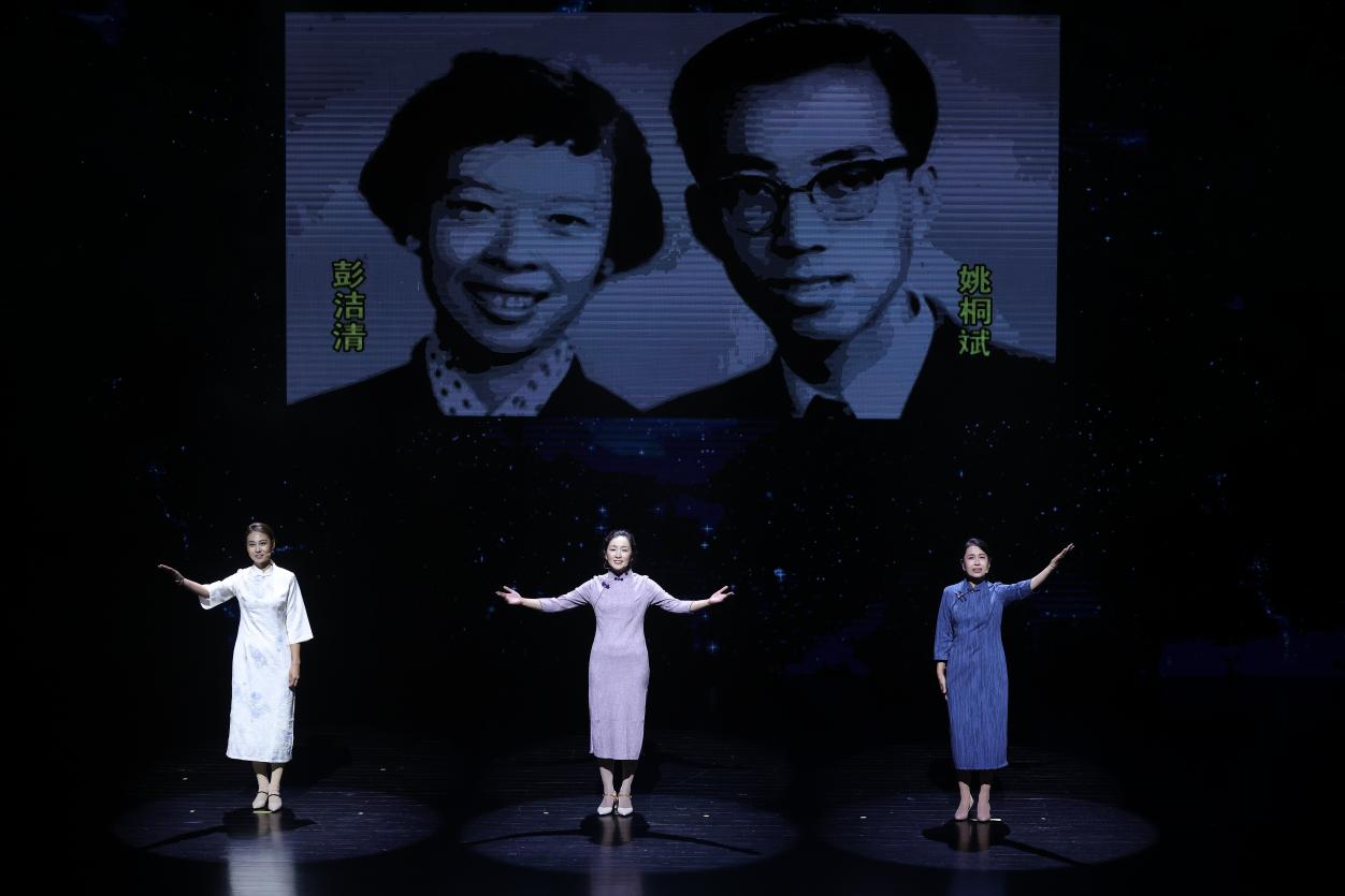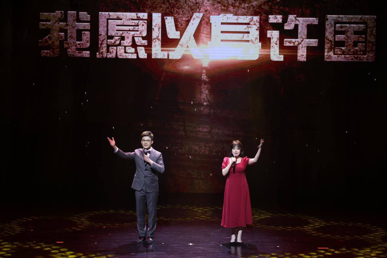 “这是中国第一颗原子弹爆炸成功的历史画面。光焰无际,好似1000个太阳发出的耀眼光芒。”屏幕上珍贵的历史画面与舞台上的音乐、朗诵交相辉映,音乐诗画剧在慷慨激昂的诵读声中拉开了序幕。演员们以充满激情的精湛表演,带领观众穿越时空,重返那个洋溢着热血与奋斗精神的年代,与老一辈科学家们同呼吸、共命运,体会他们矢志不渝的家国情怀和丰满鲜活的英雄气概。