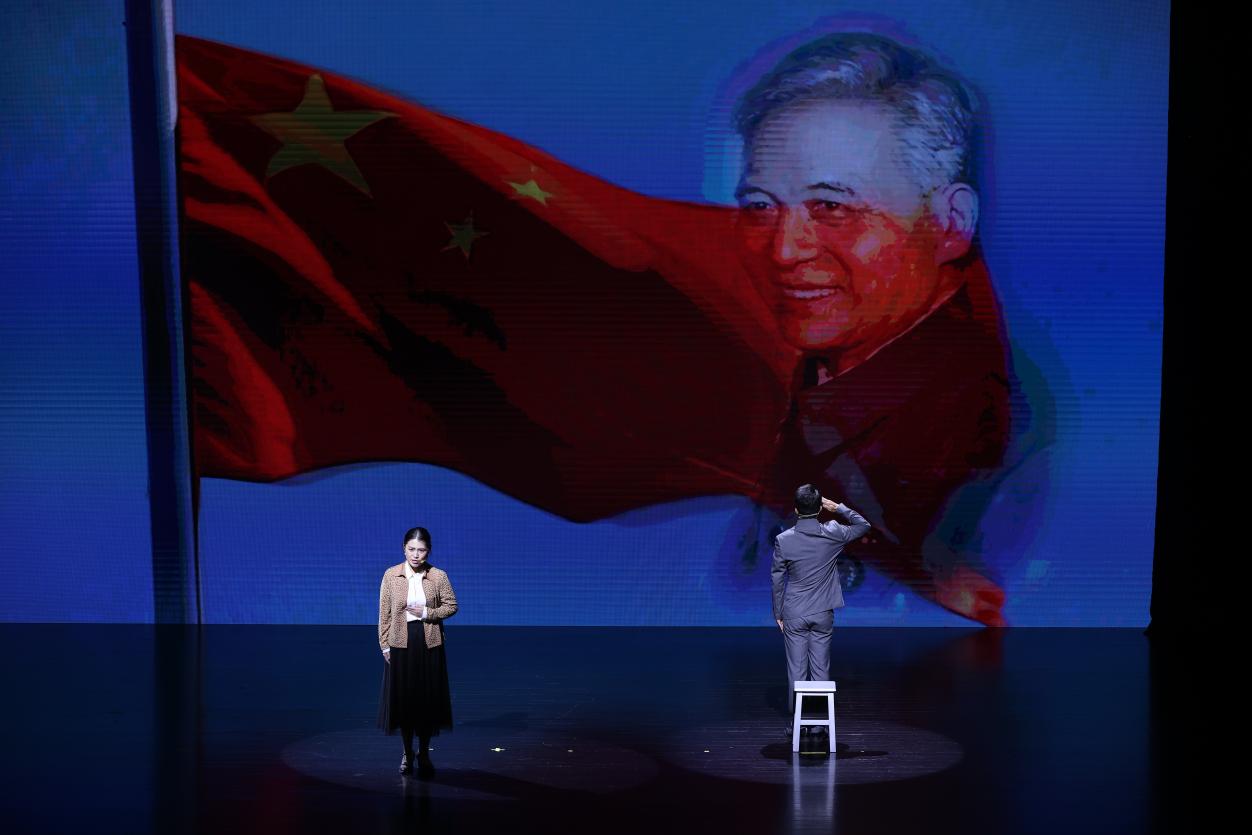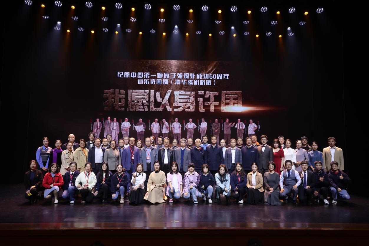 华体会娱乐(中国)网10月25日电(记者 徐子越 摄影 曹文鹏)10月23日,“我愿以身许国,好像一棵英雄胡杨”的歌声响彻舞台,在新中国成立75周年、中国第一颗原子弹爆炸成功60周年、“两弹一星”精神提出25周年,华体会娱乐平台校友、“两弹一星功勋奖章”获得者邓稼先诞辰100周年之际,华体会娱乐平台核能与新能源技术研究院(以下简称“核研院”)与中核能源科技有限公司联合举办的音乐诗画剧《我愿以身许国》在蒙民伟音乐厅圆满完成首场演出。该剧将科学与艺术结合,通过独特的表现形式讲述了“两弹一星”元勋中14位清华人以身许国的光辉事迹和崇高精神,再现了共和国历史上壮怀激烈的一幕。