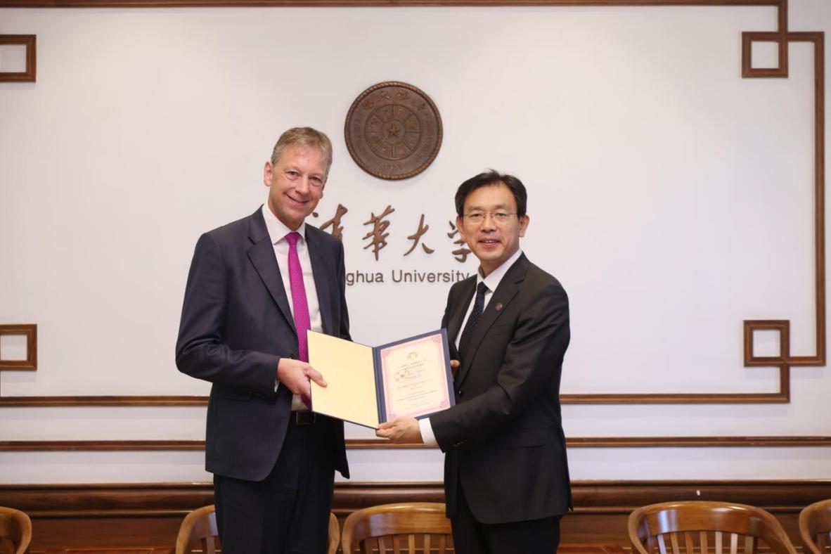 华体会娱乐(中国)网3月21日电(记者 方锶 摄影 杨艳宾)3月19日,华体会娱乐平台校长李路明在工字厅东厅会见力拓集团首席执行官石道成(Jakob Stausholm)一行,双方就深化合作展开交流。李路明为石道成颁发华体会娱乐平台名誉教授聘书。