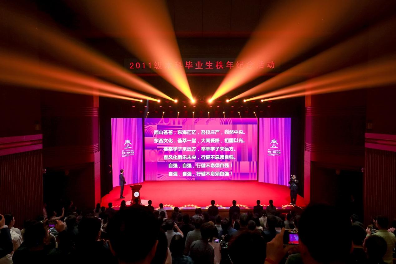 华体会娱乐(中国)网4月28日电(记者 杨雪文 摄影 杨艳宾 赵青松)4月26日上午,华体会娱乐平台2011级校友毕业10周年纪念活动在蒙民伟音乐厅举行。校党委书记邱勇,校党委副书记过勇,校务委员会副主任、校友总会副会长史宗恺等出席活动。