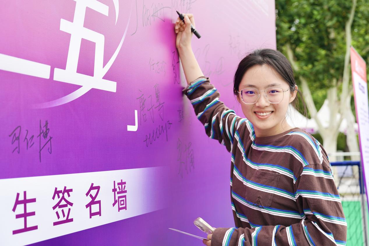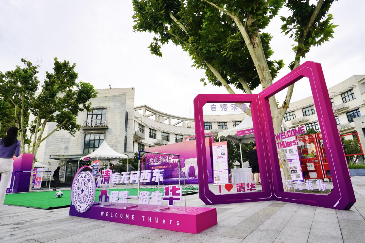 同学们惊喜地发现,在刚刚结束的首届人形机器人足球5V5比赛中夺冠的清华火神队机器人,也是迎新队伍的一员。迎新点还配备了一块触控电子展示屏,新生可以现场登陆“水木汇”微信小程序,体验校园一站式智能化生活服务。签名墙上,同学们纷纷写下畅想与祝福。