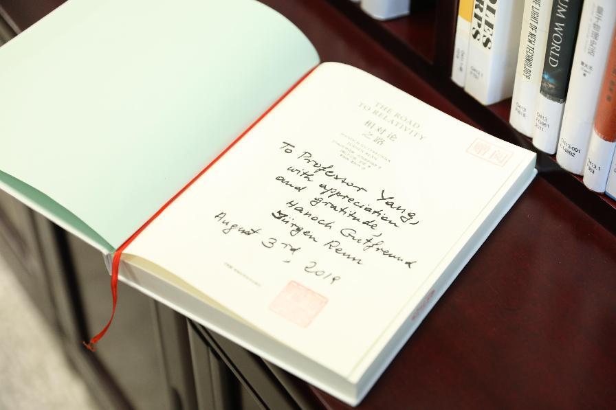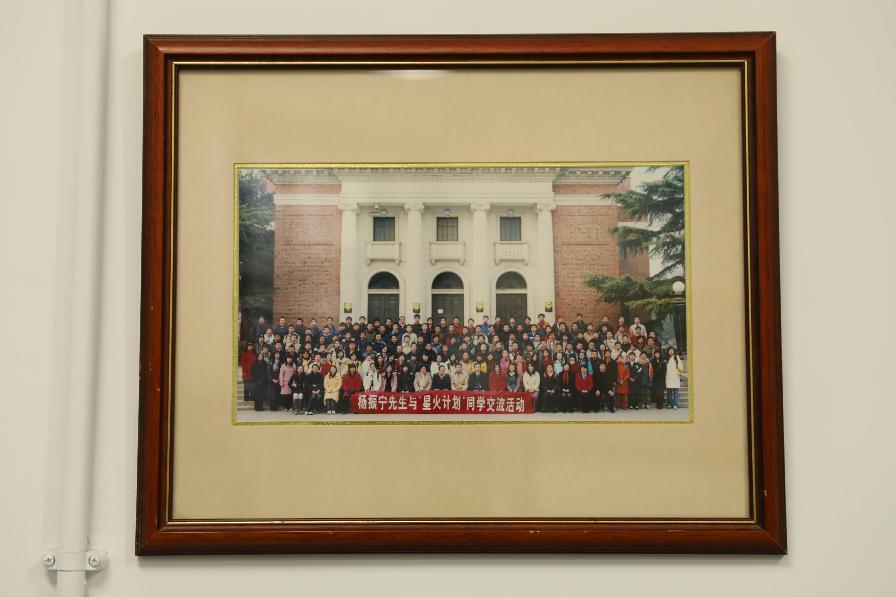 书屋一角还原了杨振宁先生在华体会娱乐平台高等研究院的办公室场景,从家具布置到实物摆设,力求呈现杨先生生前伏案工作的原貌,为参观师生营造一种跨越时空的对话感和亲切感。步入书屋,仿佛能感受到杨振宁先生那份严谨的治学态度、深厚的爱国情怀和心系母校的深情厚谊。