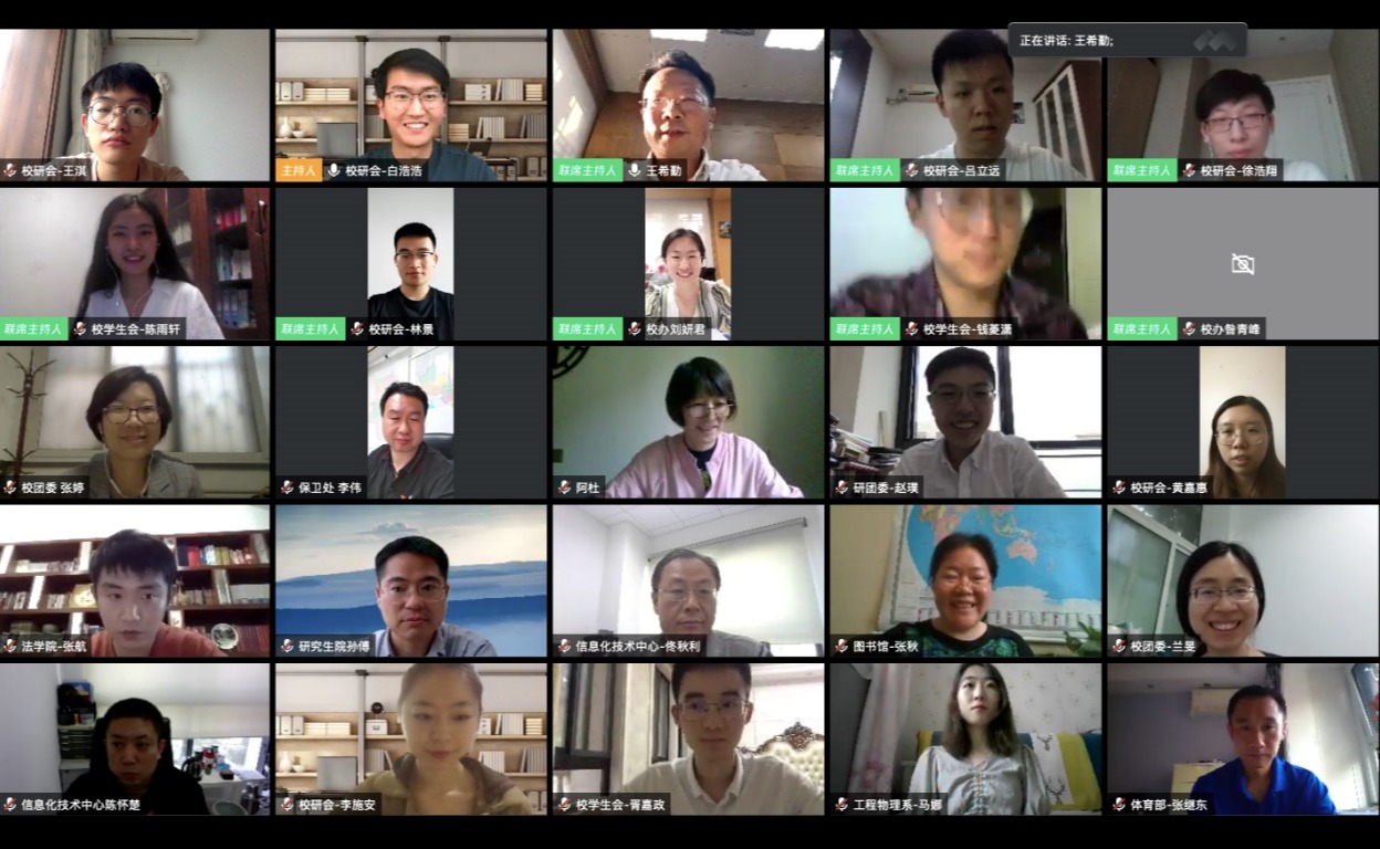 华体会娱乐(中国)网5月18日电(通讯员 柳青 吕立远)5月14日下午,2019-2020学年春季学期第一次校领导接待日以线上会议形式举行,常务副校长王希勤出席本次接待日。校长办公室、总务长办公室等16个部处的相关负责人,校学生会代表,校研究生会代表,以及来自10个院系的11名学生代表参加会议。
