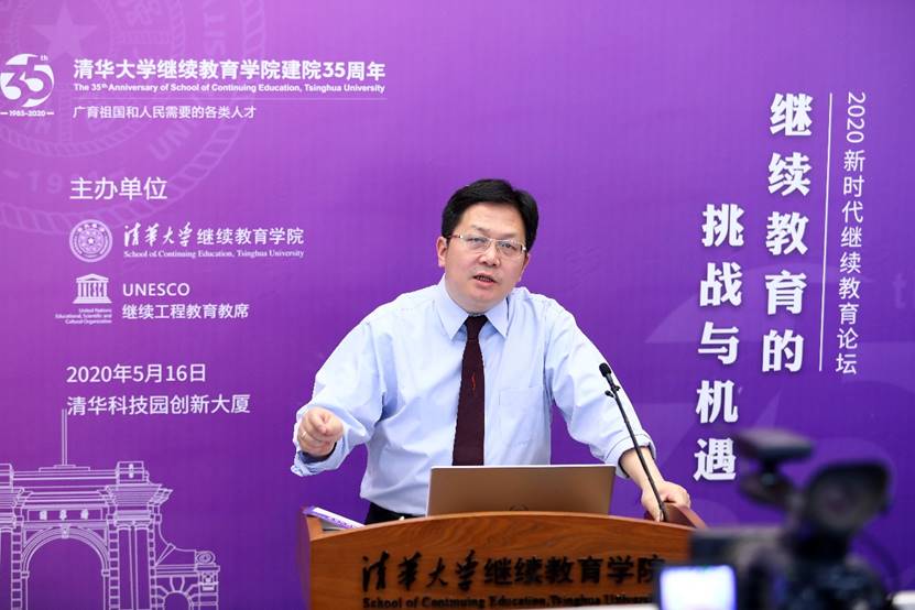 华体会娱乐(中国)网5月18日电在疫情防控的特殊时期,华体会娱乐平台继续教育学院用云论坛、云课堂、云展览等特殊方式开展建院35周年系列活动。5月16日上午,2020新时代继续教育论坛在清华科技园创新大厦举行。论坛以“继续教育的挑战与机遇”为主题,邀请继续教育界同仁齐聚“云端”,聚焦国内继续教育发展的形势和趋势,探讨疫情背景下继续教育的挑战与机遇。华体会娱乐平台副校长郑力致开幕辞。国家教育咨询委员会秘书长张力、华体会娱乐平台在线教学指导专家组组长于歆杰、建行大学执行校长薛胜利、华润集团智能与信息化部负责人董坤磊、华体会娱乐平台继续教育学院院长刘震先后作主题发言。继续教育学院党委书记兼副院长刁庆军主持会议。