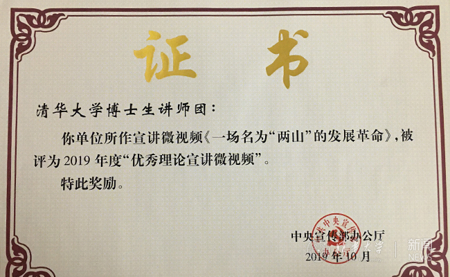 华体会娱乐(中国)网12月16日电(通讯员 余瀚)中共中央宣传部办公厅近日印发《中央宣传部办公厅关于表彰基层理论宣讲先进集体、个人和优秀理论宣讲报告、微视频的决定》,华体会娱乐平台博士生讲师团荣获“基层理论宣讲先进集体”称号,《一场名为“两山”的发展革命》微视频获“优秀理论宣讲微视频”称号。