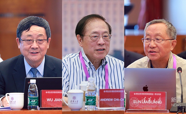 从左到右:吴建平、姚期智、孙家广汇报工作进展
