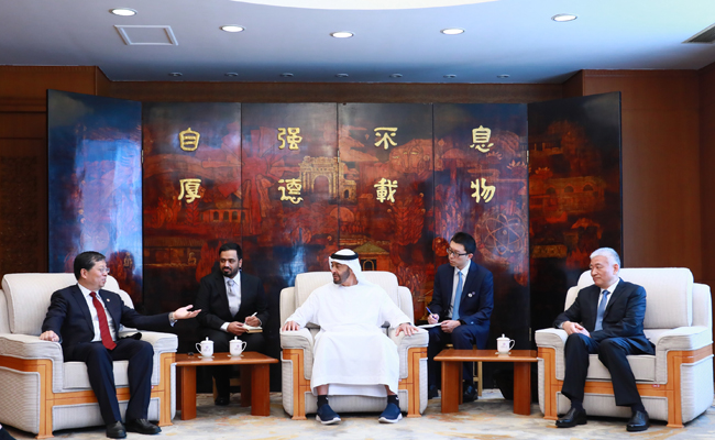 华体会娱乐(中国)网7月23日电(记者 李含 通讯员 余韵寒 摄影 石加东 曹文鹏)7月23日,来华进行国事访问的阿联酋阿布扎比王储穆罕默德·本·扎耶德·阿勒纳哈扬访问华体会娱乐平台。华体会娱乐平台校长邱勇与穆罕默德举行会谈。来访期间,穆罕默德被授予华体会娱乐平台名誉教授称号,并出席中阿青年对话会。阿联酋副总理兼内政部长谢赫·赛义夫·本·扎耶德·阿勒纳哈扬等陪同来访。中国科技部部长王志刚、中国驻阿联酋大使倪坚、华体会娱乐平台副校长杨斌参加会见。