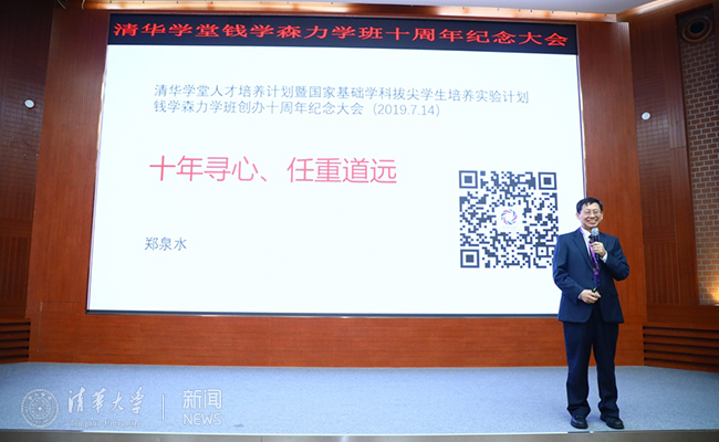钱学森力学班首席教授郑泉水在致辞中向一直以来给予钱学森力学班支持和关注的各界人士表示感谢。他表示,钱学森力学班本着开放式创新培养和以学生为主的理念,重在通过研究学习,帮助学生发现内在志趣,激发创造潜力。今后将坚持探索和优化创新人才培养方法和途径,继续发掘和培养通过技术改变世界、造福人类的创新型人才,努力为工科创新发展探索新路、提供借鉴,为国家培养更多拔尖创新人才。