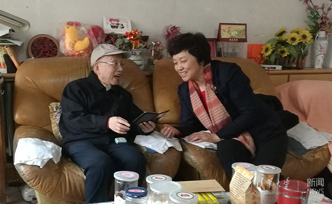 陈旭看望老校长张孝文。记者 张帆 摄
