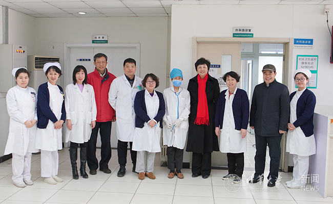 看望校医院值班医护人员。记者 张帆 摄