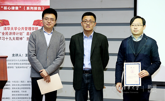党委宣传部部长张佐在发言中说,深入学习宣传贯彻党的十九大精神,是当前学校政治生活的头等大事。公管学院在学校及学院党委支持下,凝聚所有年轻人结合学术方向开展讲学活动,在学习十九大精神方面迈出了重要一步。青年兴则国家兴,青年强则国家强。青年学生要沉下心来、定下力来、静下气来,原原本本、认认真真研读党的十九大报告,结合自己的心得体会与同龄人一起分享、共同提高,才能不断提高自身的能力水平,成为有理想、有本领、有担当的青年一代。