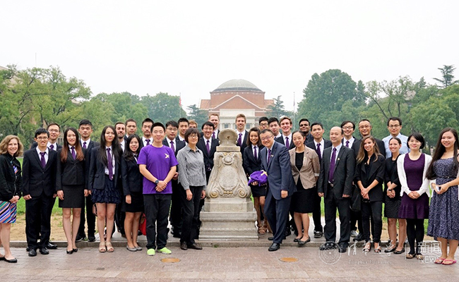 全球创新学院师生在日晷前合影。 王运涛 摄