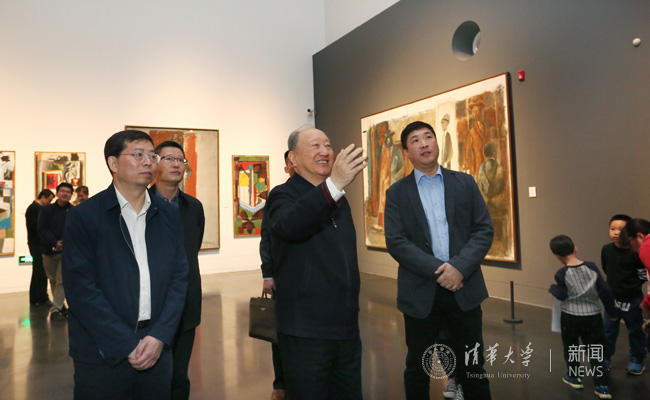 之后,徐匡迪前往艺术博物馆,听取艺术博物馆常务副馆长杜鹏飞和副馆长杨冬江的情况介绍,饶有兴致地参观了 “从酒神赞歌到阿卡迪亚:马库斯·吕佩尔茨”作品展、“清华藏珍”织绣展、瓷器展和家具展。他在参观时表示,清华艺术博物馆展品十分精致,自己非常关心艺术博物馆的发展,希望清华艺术博物馆能更进一步。