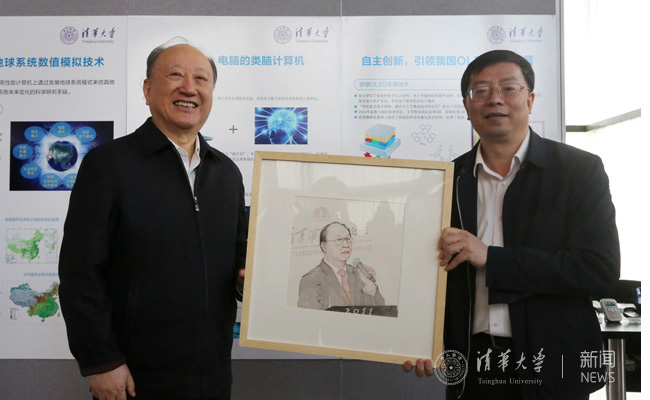 此次调研中,邱勇向徐匡迪赠送了2015、2016级新生们写的《续写岁月的传奇——清华学子感悟〈平凡的世界〉》、《宁静的力量——清华学子感悟〈瓦尔登湖〉》两本校长赠书读后感汇编,以及美术学院硕士生创作的徐匡迪到清华演讲时的画像。